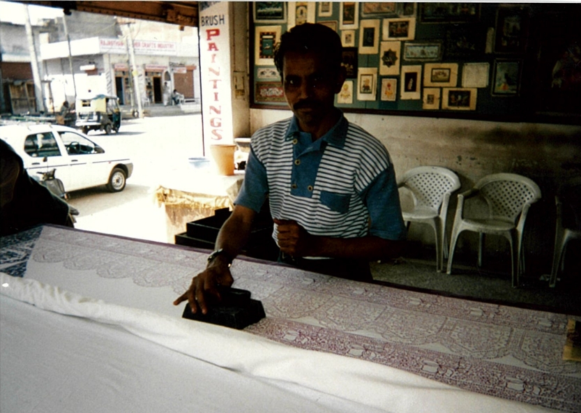 その後サリー屋さんに行って布にどんな風に染色するのかを見せてもらった。